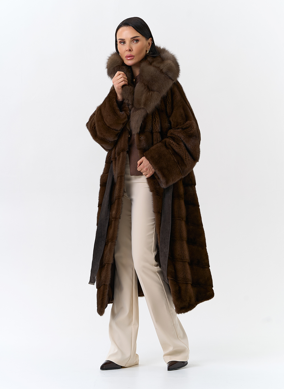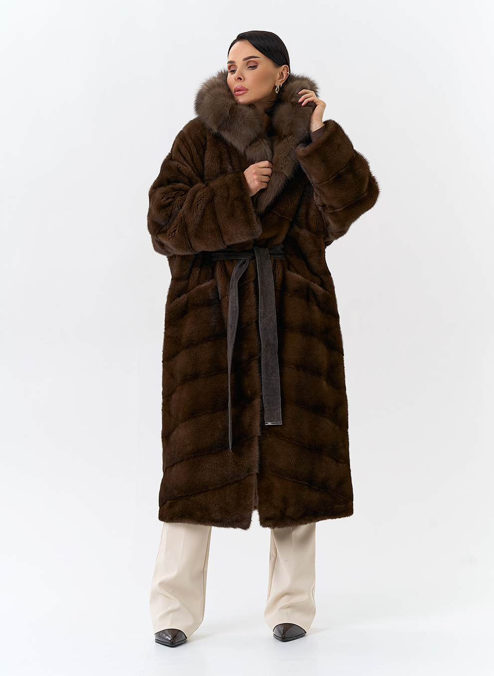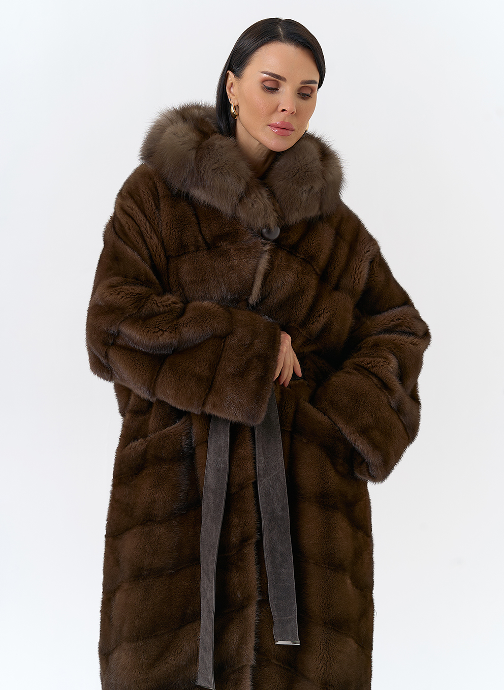 Тип ворота - капюшон, отделка куница